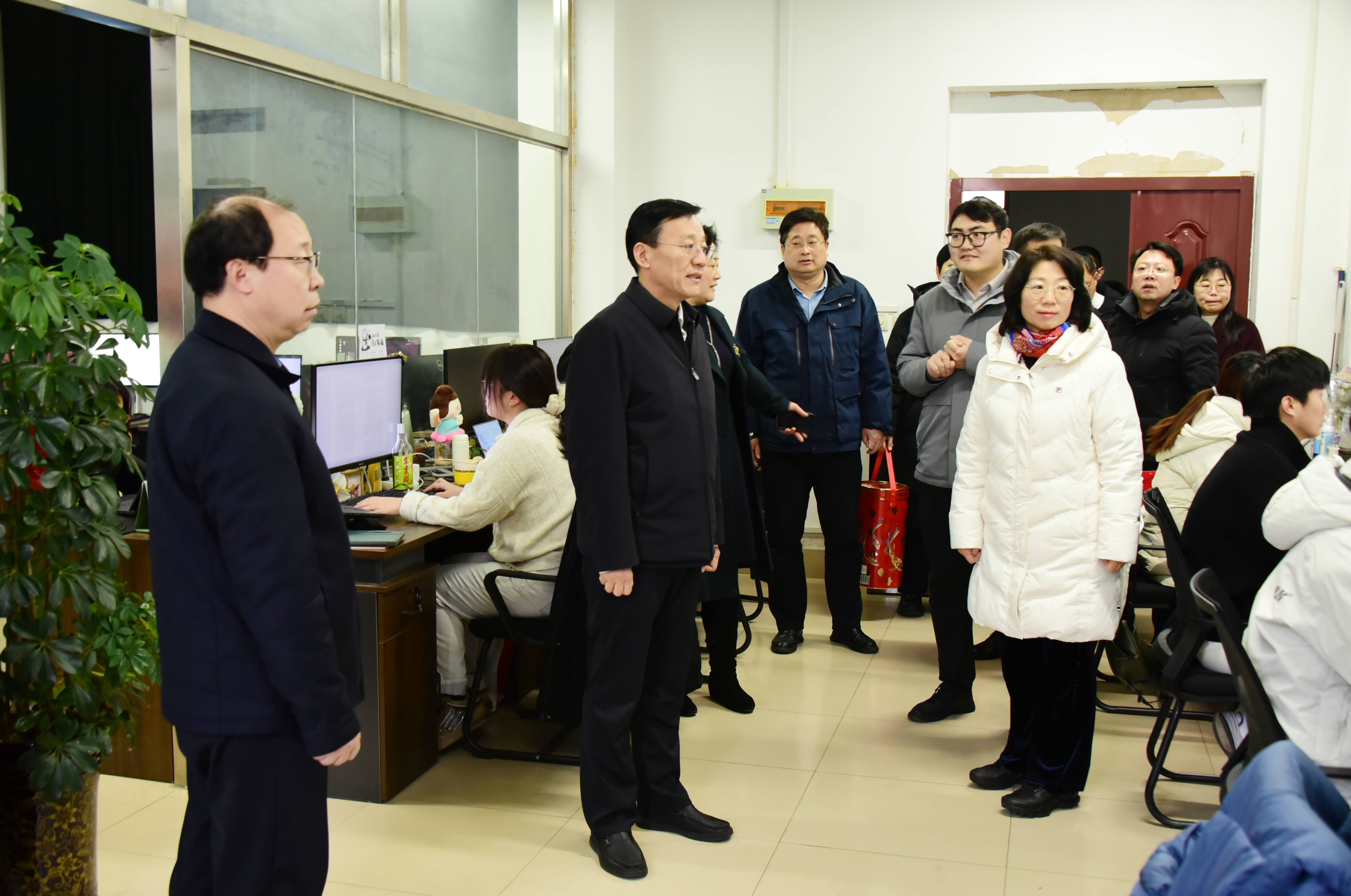 走访过程中,来逢波、王霞先后走进山东省多媒体内容分析与检索创新团队、潍坊民间美术与传统手工艺文旅活化山东省文化和旅游重点实验室、CO₂催化转化研究创新团队、山东省渔业资源开发与综合利用技术创新团队等科研阵地。每到一处,校领导都与团队负责人及成员亲切交谈,感谢大家为学校科研事业发展所付出的辛勤努力,将寓意吉祥的春联、福字送到大家手中,询问各项目研究进展、春节期间工作安排情况,倾听科研人员在实验开展、团队建设、资源保障等方面遇到的困难与需求,征求大家对学校科研平台建设、政策支持、服务保障等工作的意见建议。
