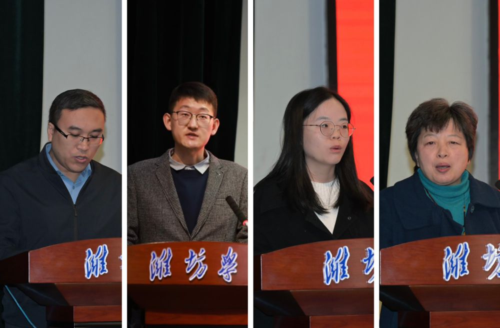 会上,学校对2025年度科研人才工作先进单位和个人进行表彰,姜在勇、吴玉浩、刘冰、朱文英4位获奖代表作交流发言,分享科研创新、人才培养等经验做法,展现潍院科技人才奋勇争先、实干担当的精神风貌。