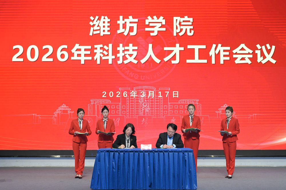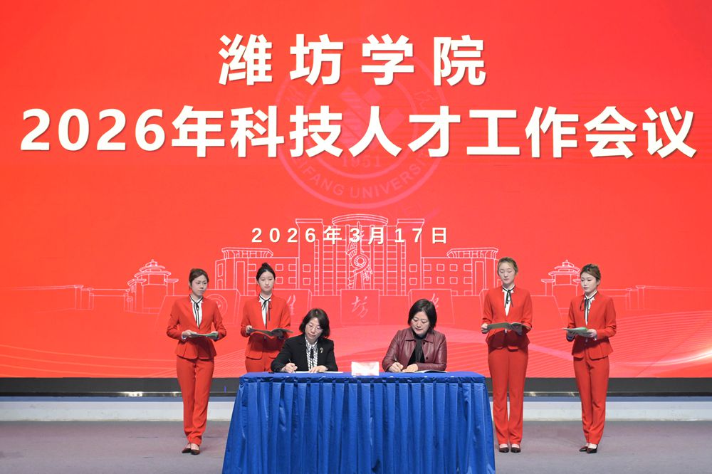 本站讯 春归万物生,策马踏新程。3月17日,学校召开2026年科技人才工作会议。山东省教育厅二级巡视员管恩文,潍坊市委常委、副市长狄波出席会议并致辞。党委书记来逢波作总结讲话,党委副书记、校长王霞作科技人才工作报告。会议由来逢波,党委委员、副校长苗金春分阶段主持。省教育厅科技处二级调研员矫立峰、学校党委领导班子成员出席会议。