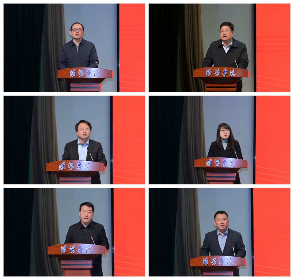管恩文代表省教育厅致辞,对会议召开表示祝贺,充分肯定学校在人才引育、科技创新、服务区域发展等方面取得的显著成效。他强调,要统筹推进教育、科技、人才一体发展,强化有组织科研,集聚人才第一资源,激活创新第一动力,聚焦发展第一要务,推进科技创新与产业创新深度融合,加快建设国内一流应用型大学,为教育强省、科技强省建设贡献潍院力量。
